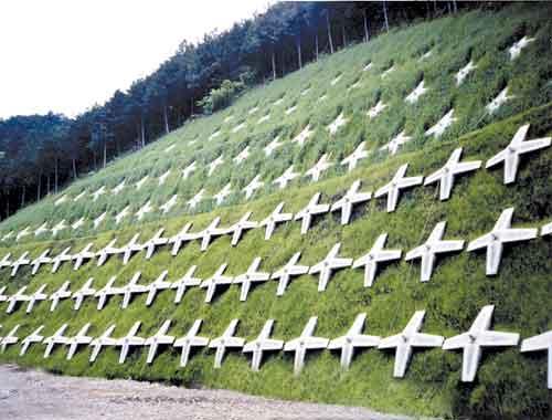 - 吹付法枠・アンカー受圧板等のコンクリート構造物全面被覆および樹林化